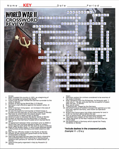 To drop the atomic bomb on hiroshima (5,3) 2. Next time, when searching for online help with your puzzle, try using the search term miniature for a world war ii buff crossword or miniature for a world war ii buff crossword clue. Click the answer to find similar crossword clues. Main causes of world war two crossword answer key.pdf free pdf download Answers for anthony., british foreign secretary during world war ii crossword clue.